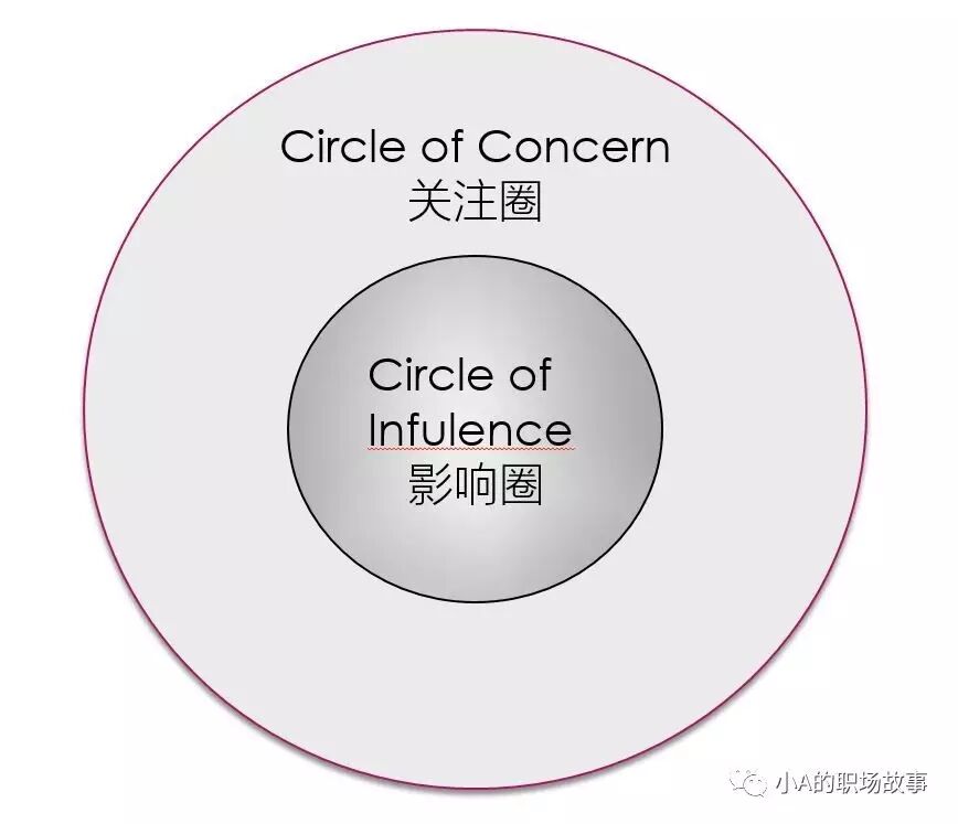 如果你平时总是盯着关注圈,也就是你不能掌控的这些事情上,你会觉得自己没有什么能做的,这样渐渐你的影响能力就会变弱。