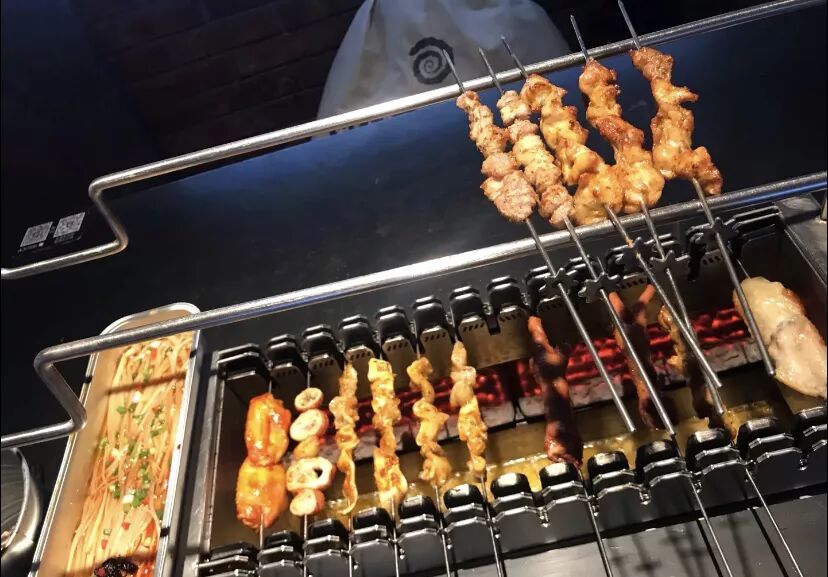 烤串的设备看着很高级,下方有链条,串的签子是齿轮形状的,卡在烤串的设备卡口处,链条自动转,签子也随着转,能够烤的很均匀,既有吃串时喜欢自己动手烤的满足感,又不会费事顾不上吃串,很方便。据说这个设备有专利。