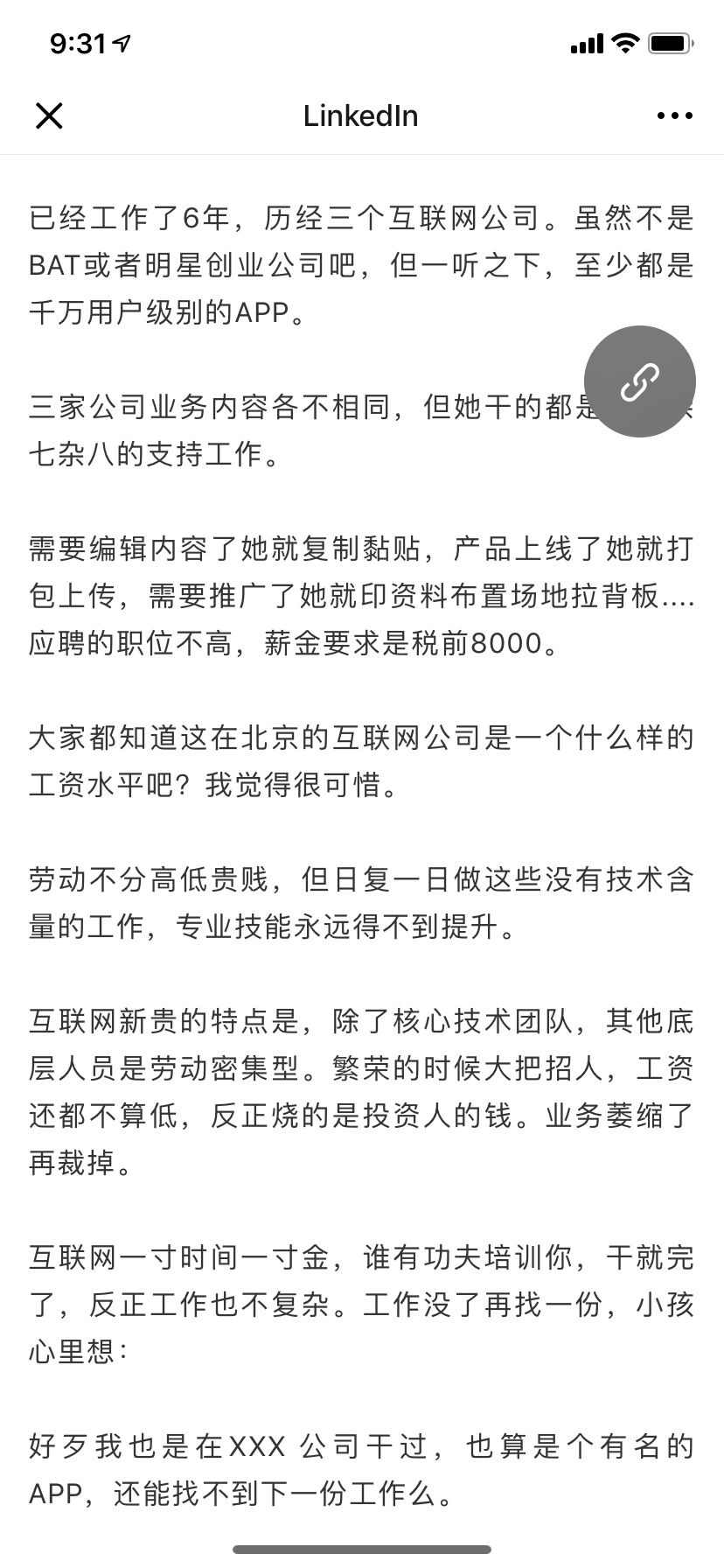 之前在LinkedIn上看到一篇文章里的几段话,觉得非常对。所以我当时真的是希望K能够再做一两个亮眼的case,升一级,哪怕之后再选择离开的。