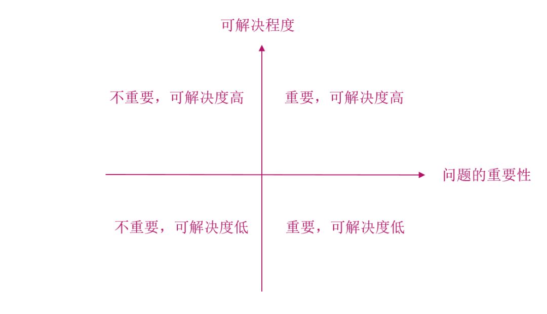 把重要性和可解决度作为横纵轴,我们得到四个象限,分别是: