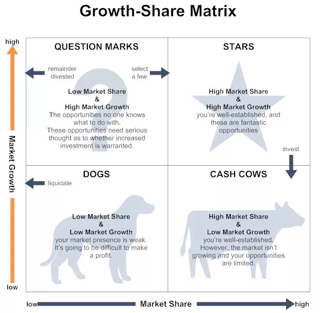大到一个公司不同的业务单元分别在BCG矩阵上处于什么样的位置,对公司有什么样的贡献。
