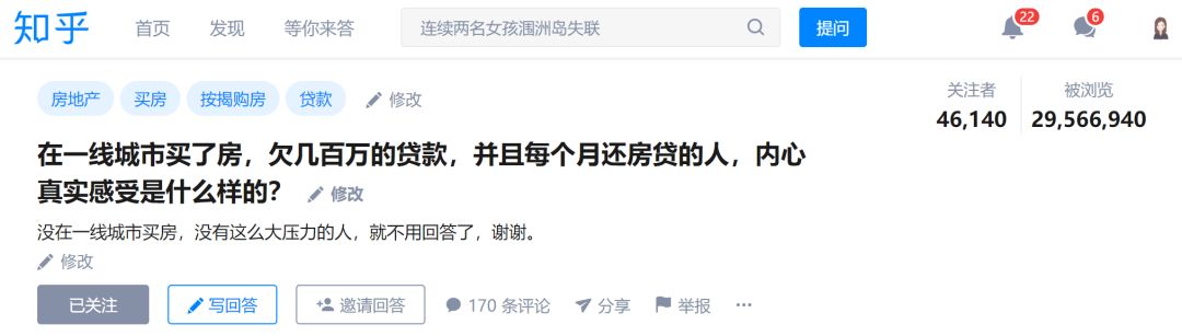 知乎3000万浏览量的提问:一线城市买房欠几百万贷款,是种什么感受?