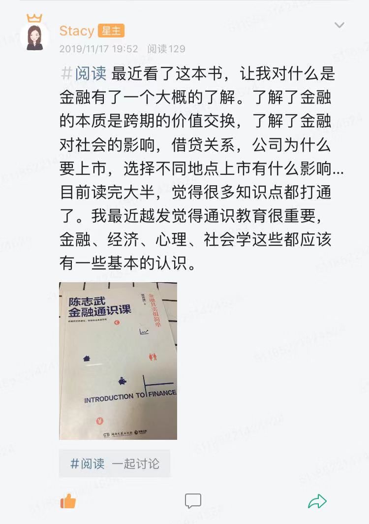 这本书让我对什么是金融有了一个大概的了解,了解了金融的本质是跨期的价值交换,了解了金融对社会的影响、借贷关系、融资、为什么不同类型的公司选择不同的地方上市...